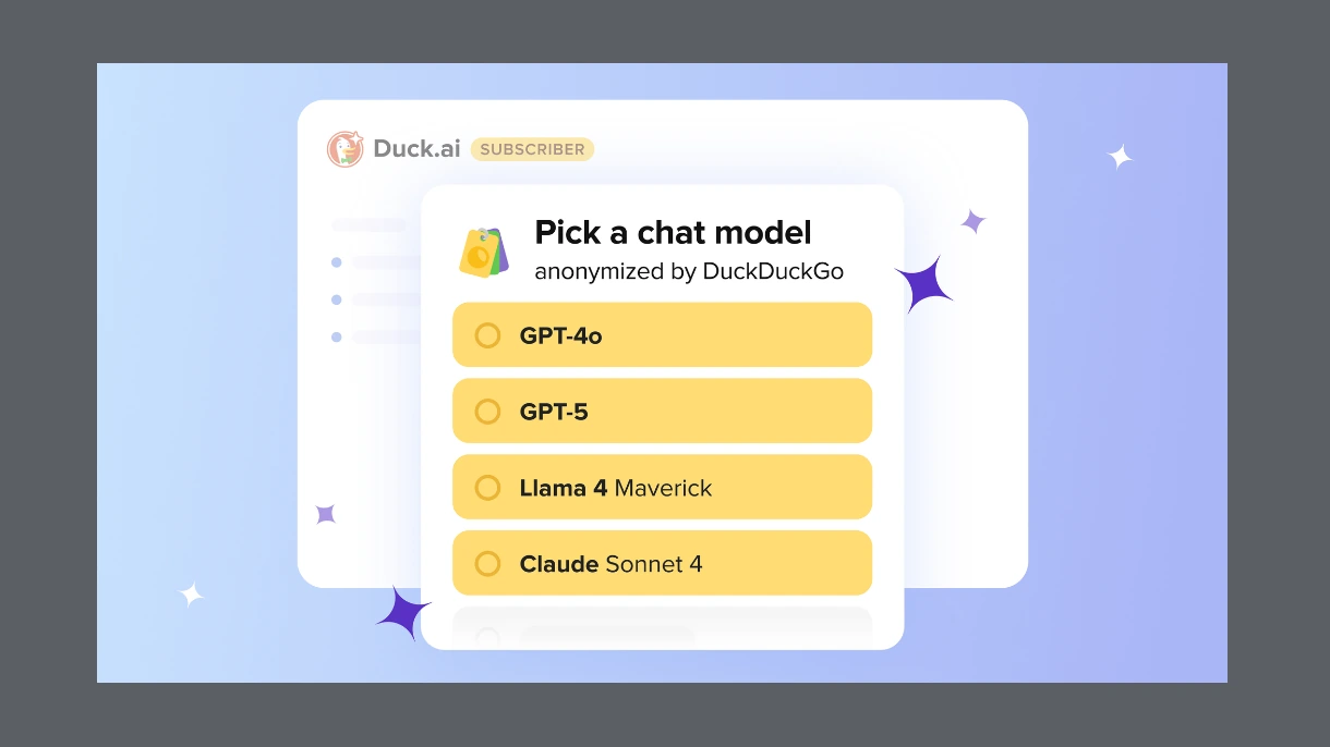 • DuckDuckGo-prenumerationen, tidigare Privateness Professional, inkluderar nu tillgång until avancerade AI-modeller som OpenAI:s GPT-4o och GPT-5, Anthropic:s Claude Sonnet 4 och Meta:s Llama Maverick.