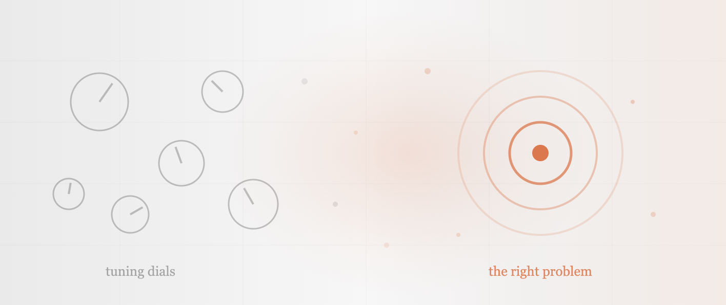 First, suggestions asymmetry. While you tune a hyperparameter, you see the end in minutes. While you reframe an issue, the payoff is invisible for weeks. Human brains low cost delayed rewards. So groups gravitate towards the quick suggestions loop of tuning, even when the gradual work of framing has 10x the return.